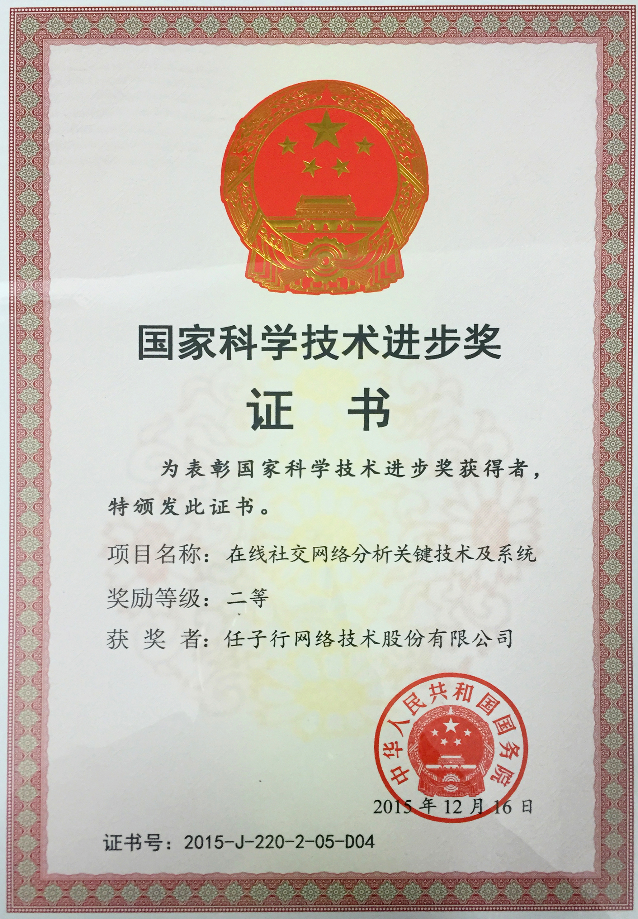 2015Äê¹ú¼Ò¿ÆÑ§ÊÖÒÕǰ½ø½±¶þµÈ½±